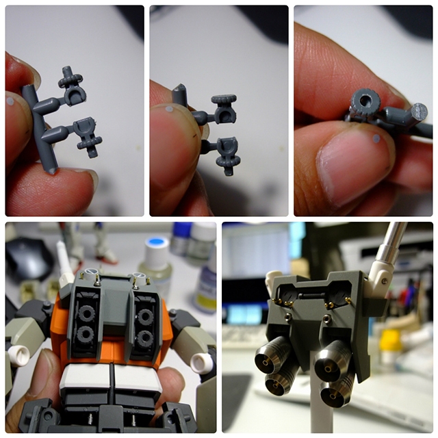 5.キットへの取り付けは、取り付けたい部分に2mmの穴をあけて、ノズルを差し込むだけです。強度が必要な場合は接着剤を併用してください。