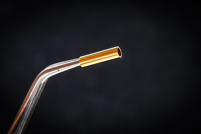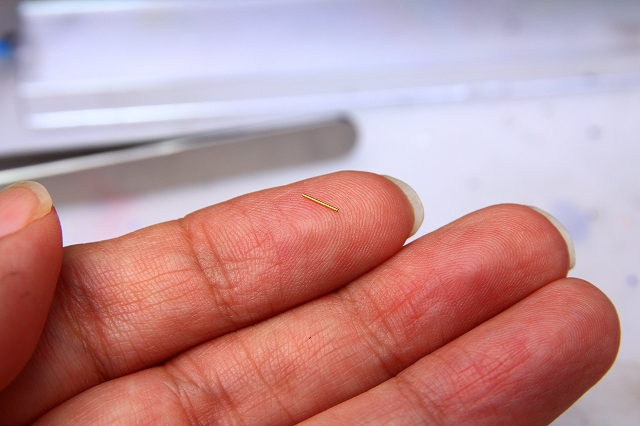 ダンダム系にはほとんど装着されている頭部バルカンは、HGUC1/144やそれ以下のサイズだと1mm以下の極小サイズになります。これを何とかキレイなディテールにしたくて、このパイプを作りました。写真のとおり指紋と同じくらいの細さですが、断面はキレイです。